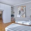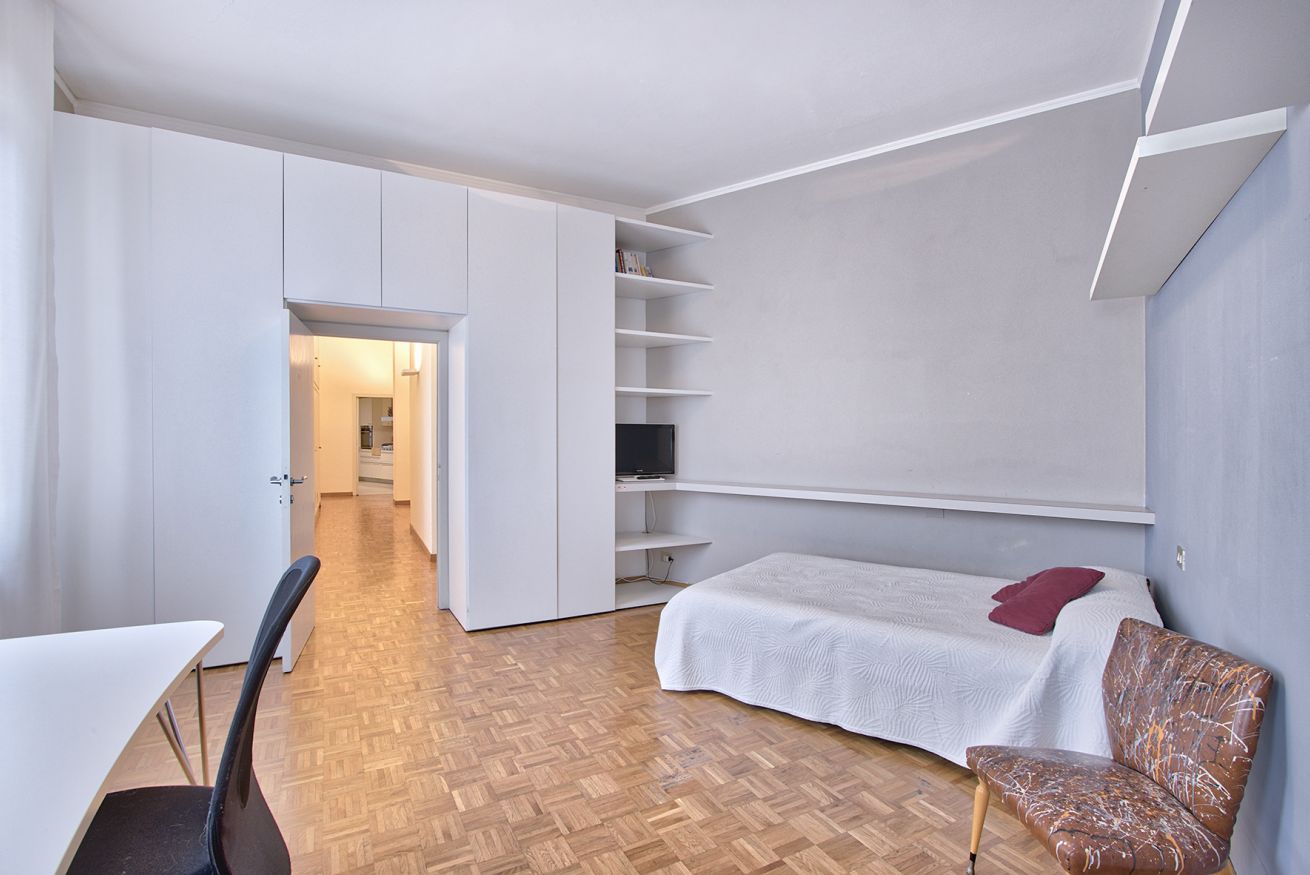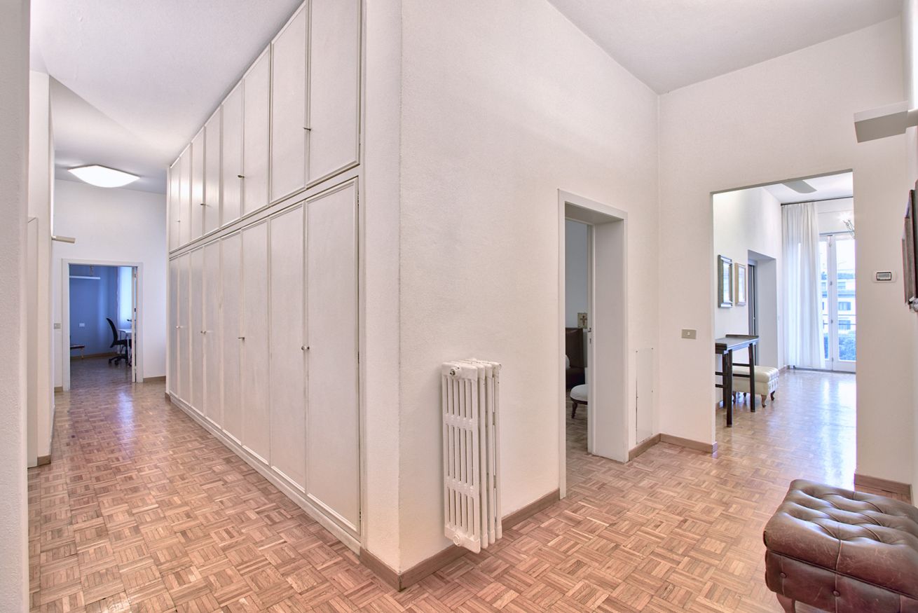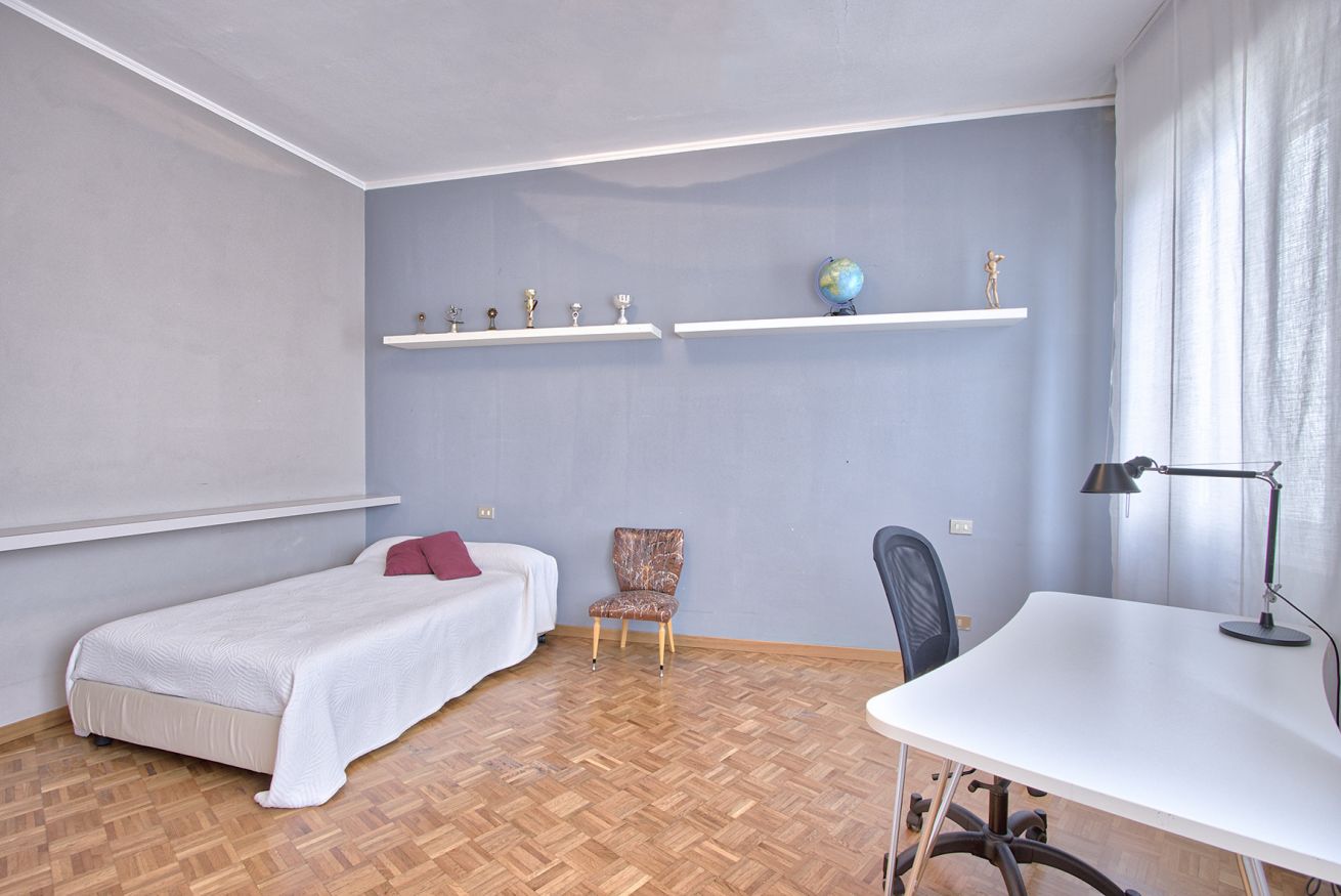 La zona notte offre tre camere da letto ampie e arredate con gusto. La camera padronale si distingue per la presenza di un elegante armadio spazioso e una raffinata chaise longue, elemento d’arredo che richiama lo charme classico. La seconda e la terza camera, entrambe dotate di capienti armadi, sono arredate con due letti singoli ciascuna; una delle due è completata da una TV, pensata per offrire un ulteriore angolo dedicato al relax.