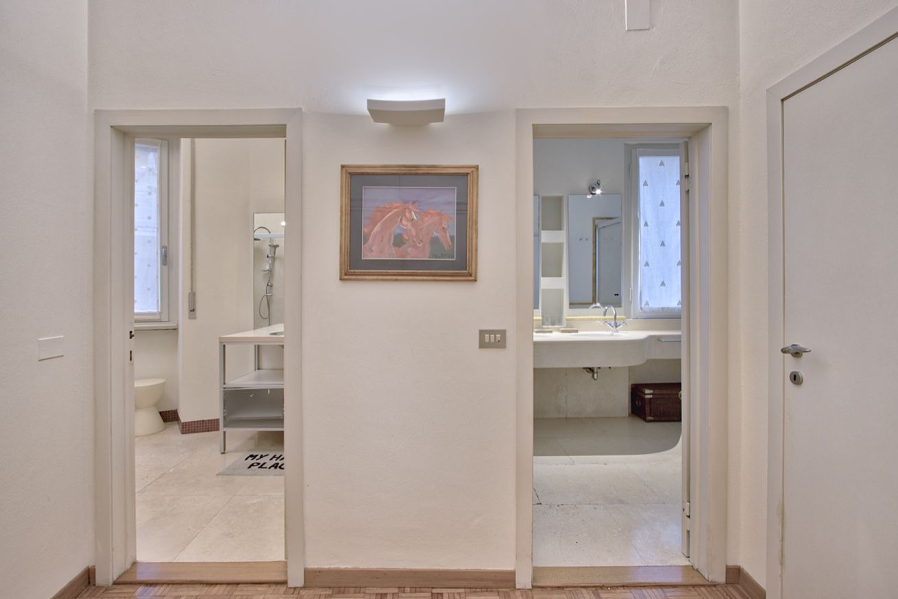 A servizio della zona notte vi sono due bagni completi: il primo, raffinato e ben rifinito, è dotato di doccia; il secondo, più ampio, presenta una spaziosa doccia walk-in e un elegante doppio lavabo, pensato per garantire praticità e comfort anche negli usi quotidiani più intensi.