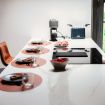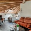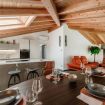 Un ingresso elegante introduce a un living luminosissimo, caratterizzato da ampie vetrate che inondano d’aria e luce l’open space. Due divani ampi e una smart TV garantiscono comfort e intrattenimento, mentre la zona pranzo integrata lo rende ideale per convivialità e momenti di condivisione.
