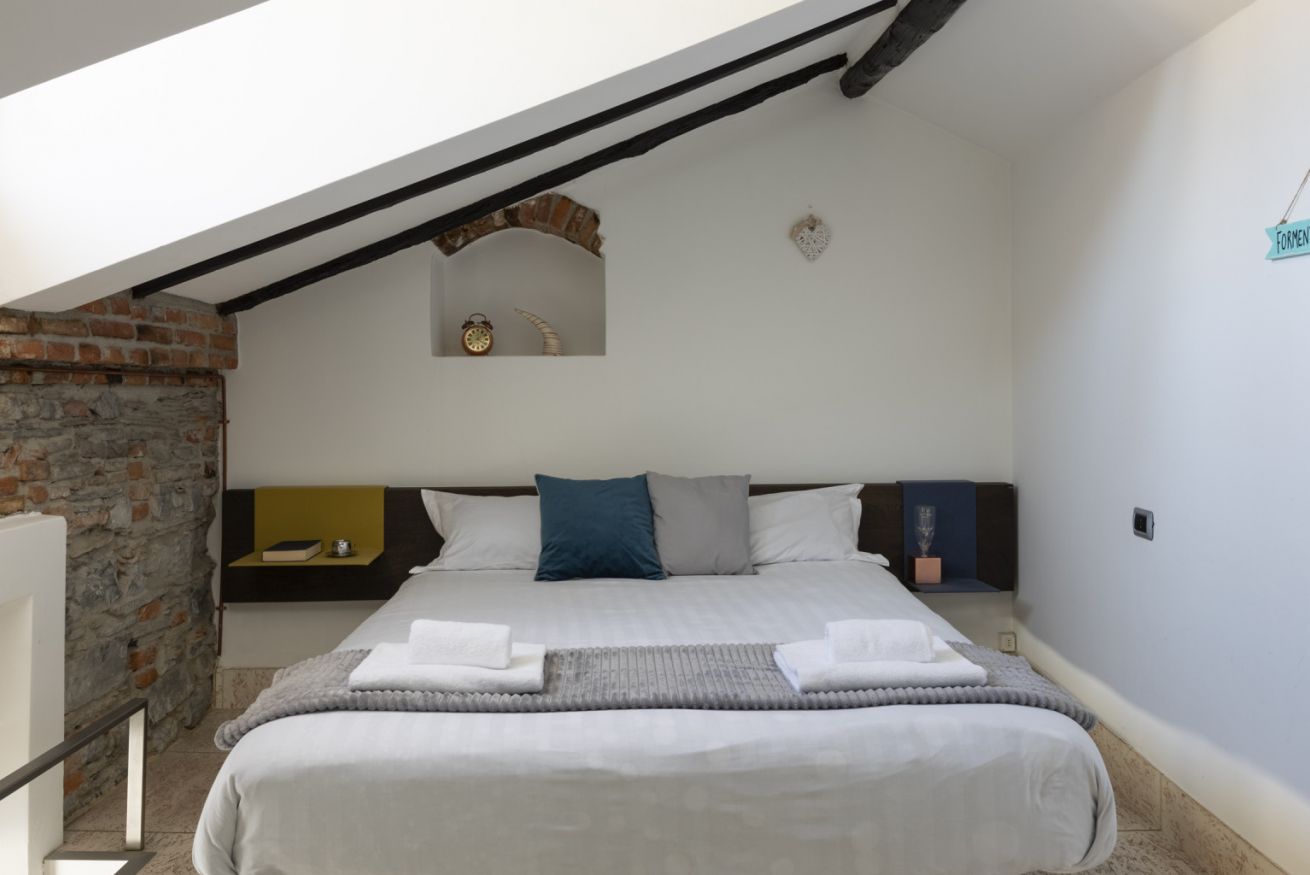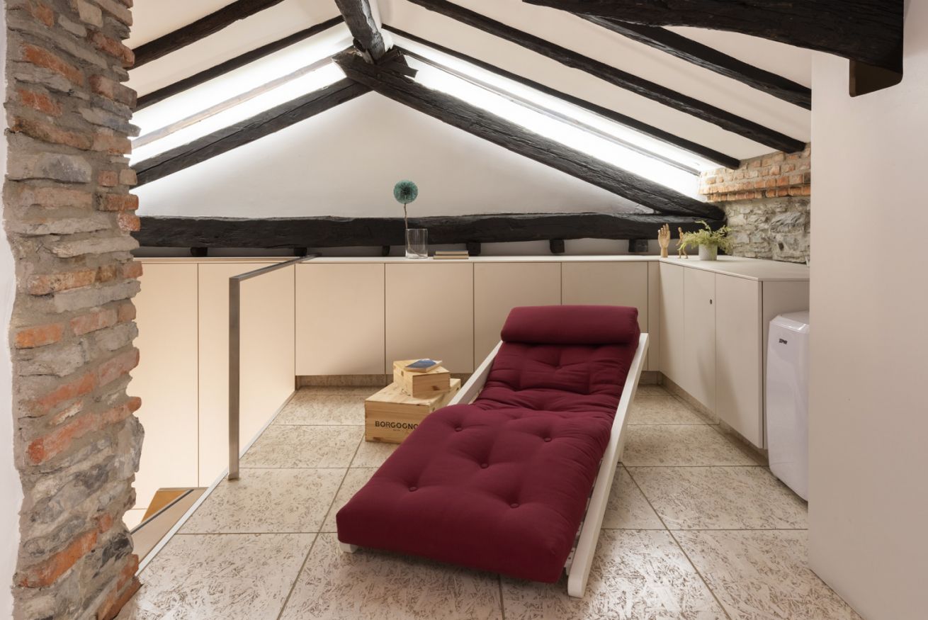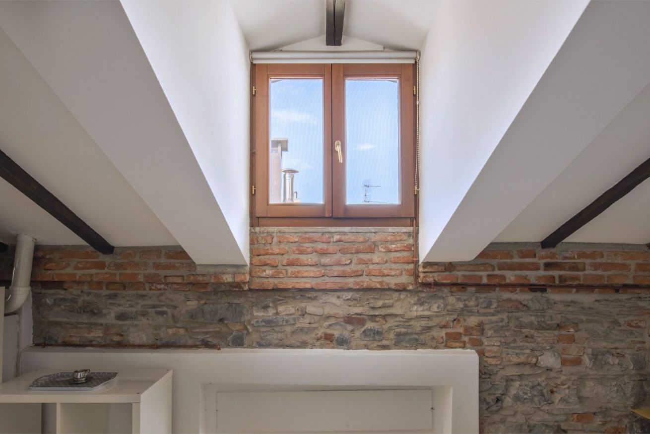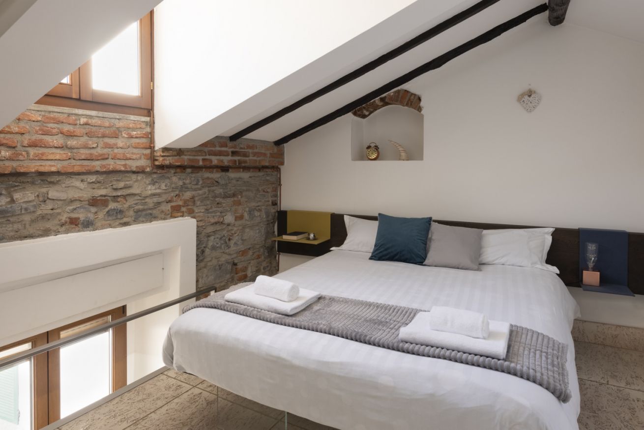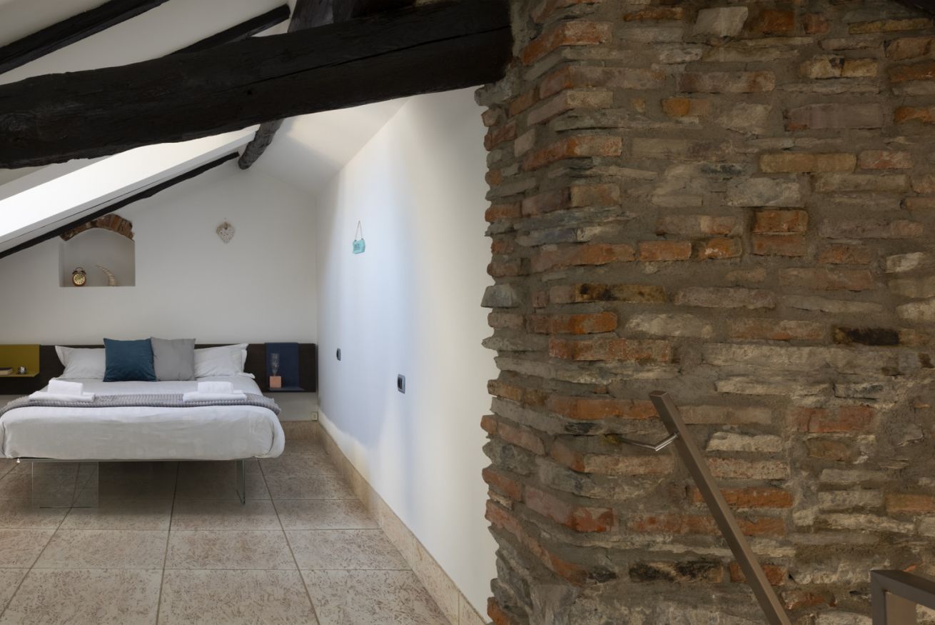 Affascinante appartamento su due livelli in contesto signorile, situato al secondo piano senza ascensore e privo di climatizzatore, dove il carattere storico incontra un design contemporaneo studiato nei dettagli. Travi in legno a vista, pareti in mattoni e pietra naturale e lucernari creano un’atmosfera autentica e suggestiva.