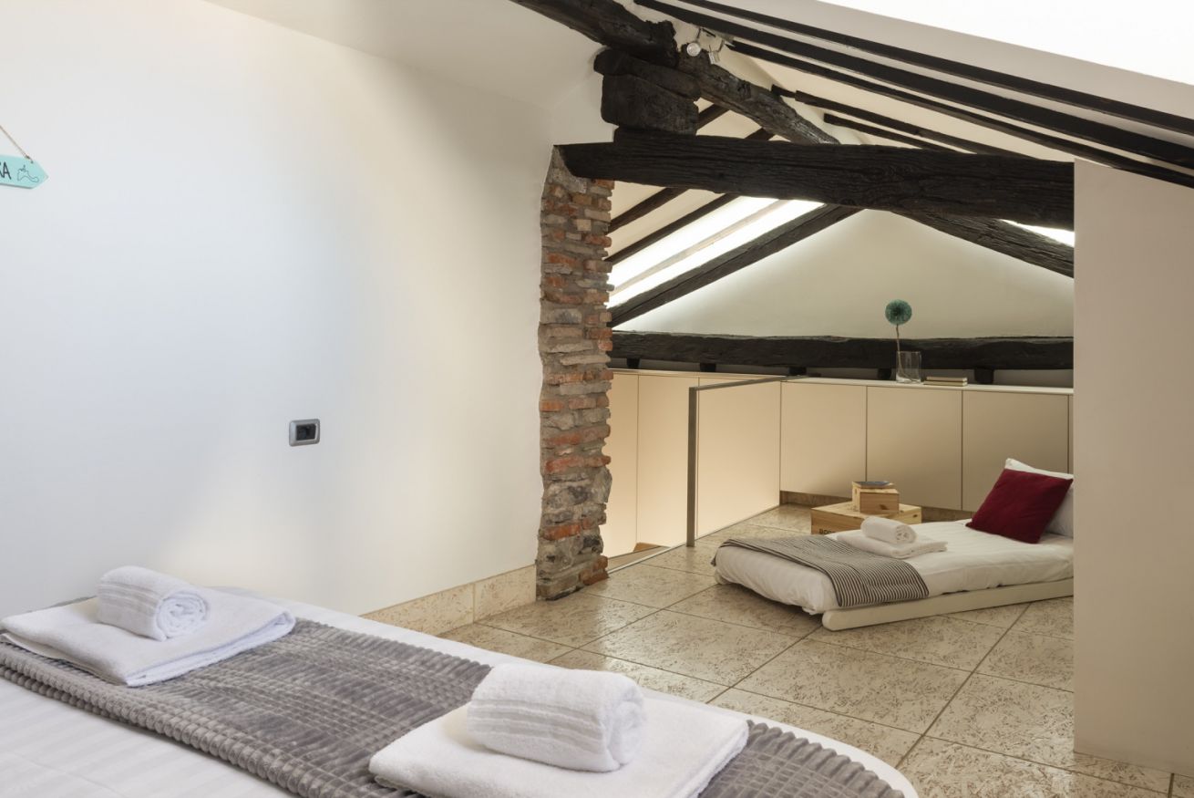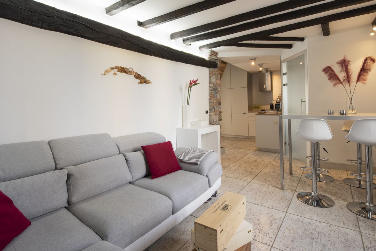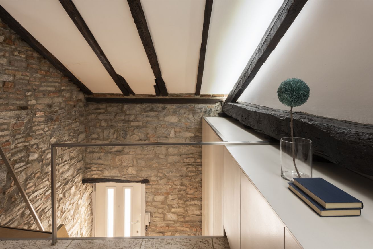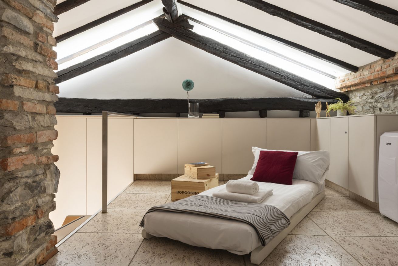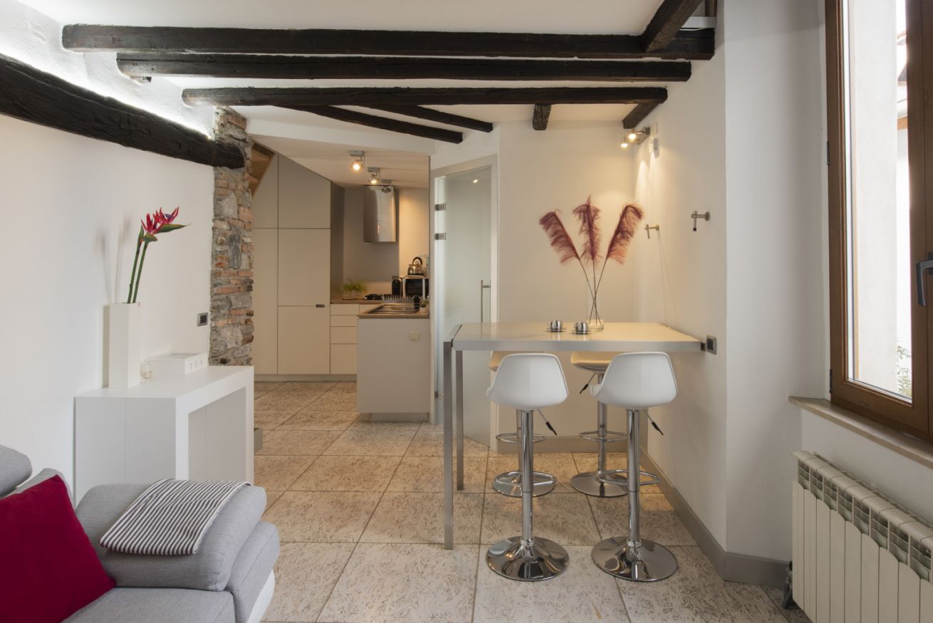 Affascinante appartamento su due livelli in contesto signorile, situato al secondo piano senza ascensore e privo di climatizzatore, dove il carattere storico incontra un design contemporaneo studiato nei dettagli. Travi in legno a vista, pareti in mattoni e pietra naturale e lucernari creano un’atmosfera autentica e suggestiva.