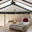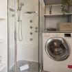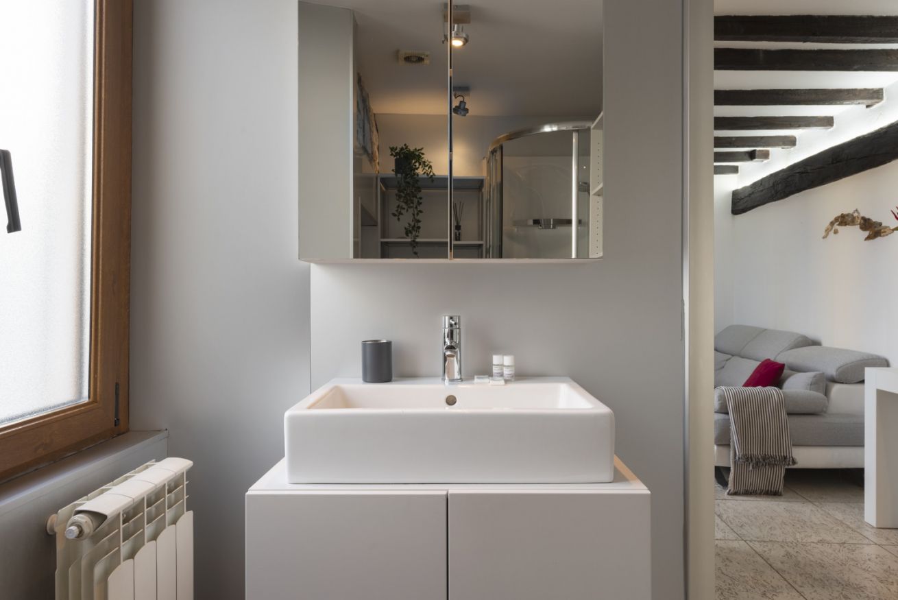 A completare, un raffinato angolo relax con chaise longue imbottita che si trasforma facilmente in un terzo letto, e un bagno moderno completo di doccia e zona lavanderia integrata. Una soluzione di charme, calda e ricca di personalità.
