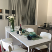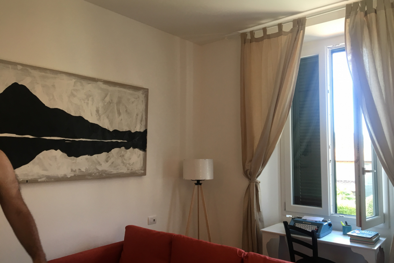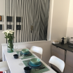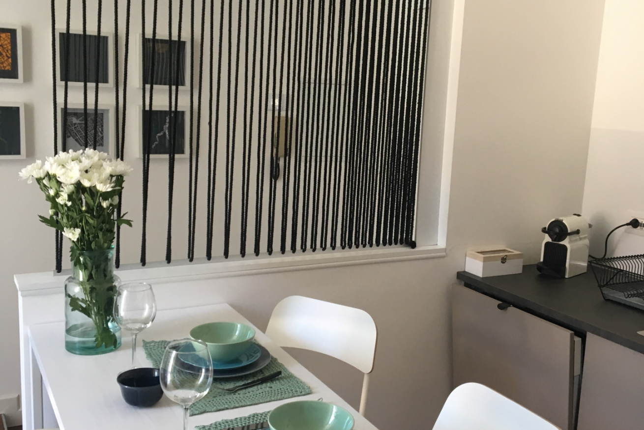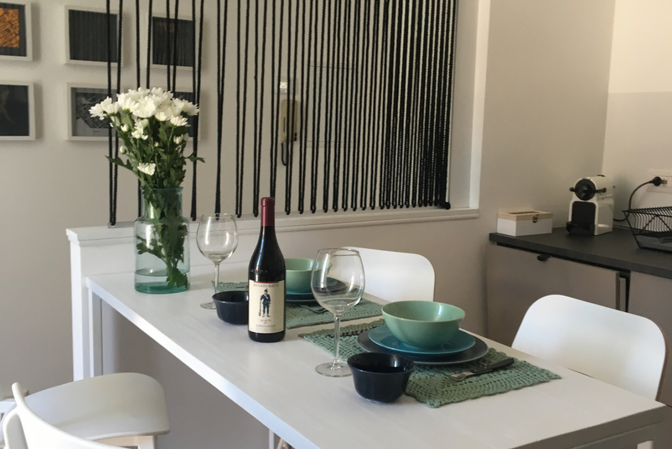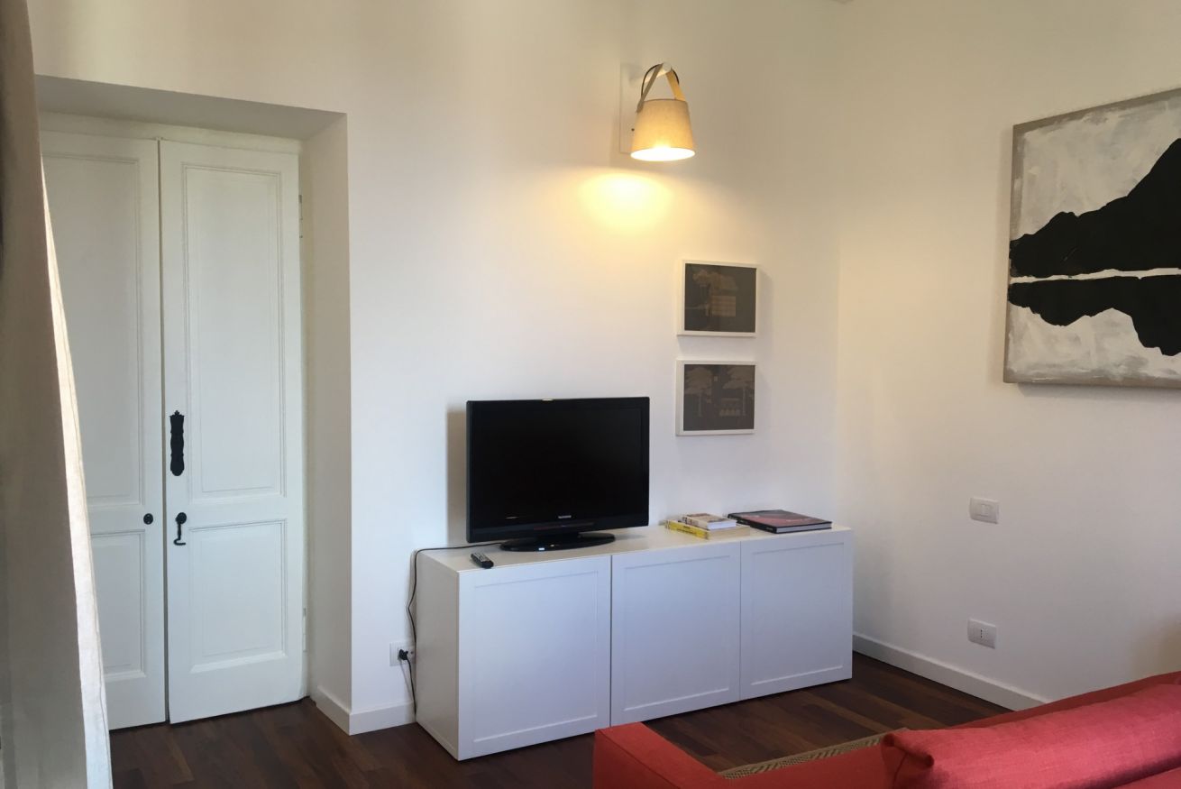 Moderno appartamento al 2° piano senza ascensore, curato nei dettagli e impreziosito da caldi pavimenti in parquet. L’area living accoglie con un elegante divano letto, TV e opere d’arte contemporanee che donano carattere all’ambiente. La cucina lineare dal design essenziale è affiancata da un tavolo alto con sgabelli, perfetto per momenti conviviali. Camera matrimoniale luminosa e bagno con ampia doccia in vetro completano una soluzione raffinata e funzionale.