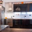 La cucina, moderna e lineare, si integra armoniosamente nello spazio grazie alle superfici lucide e all’illuminazione studiata, trasformandosi in un elemento estetico oltre che funzionale, come nelle più attuali concezioni dell’abitare contemporaneo. Il lampadario a sospensione, vero elemento di carattere, impreziosisce l’ambiente creando un’atmosfera calda e ricercata, capace di valorizzare ogni momento della giornata .