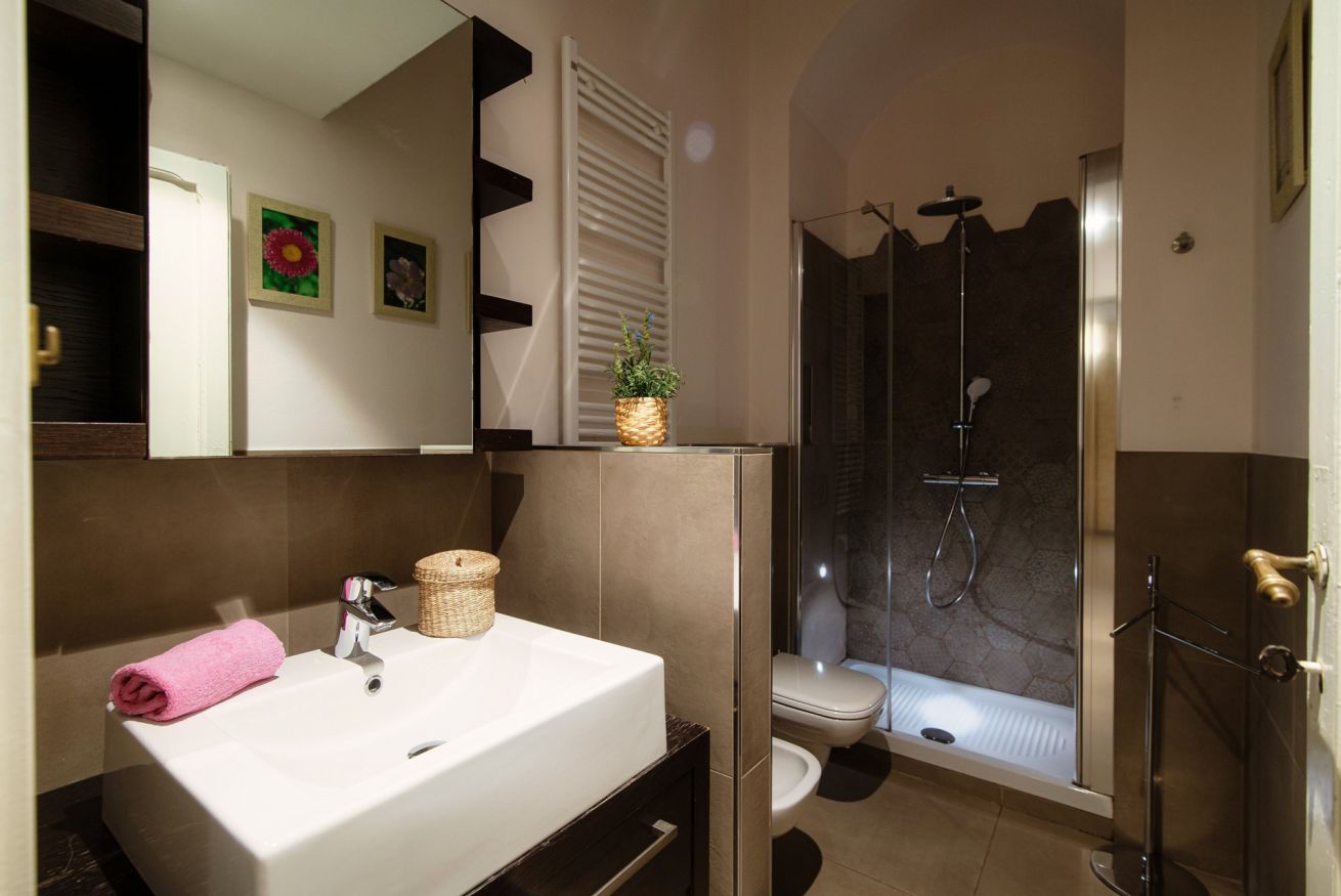 La camera matrimoniale, intima e raffinata, conquista con dettagli romantici, tessuti coordinati e un design armonioso che invita al riposo. Il bagno, moderno e curato, è dotato di ampia doccia e finiture contemporanee. Ogni spazio è studiato per offrire comfort, funzionalità ed estetica, rendendo questa soluzione perfetta per chi desidera vivere Como con stile, tra eleganza e praticità.
