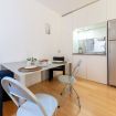 Questo appartamento completamente arredato, dal design classico, offre massimo comfort. La cucina, dotata di un ampio frigorifero, è ideale per soggiorni medio-lunghi. Il soggiorno accogliente presenta un comodo divano letto di fronte alla TV, arricchito da raffinati oggetti di design e una lampada classica. Un tavolo con due sedie e poltroncine completano la stanza. Il bagno e una confortevole camera da letto king size completano gli spazi.