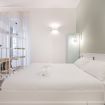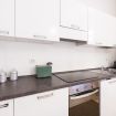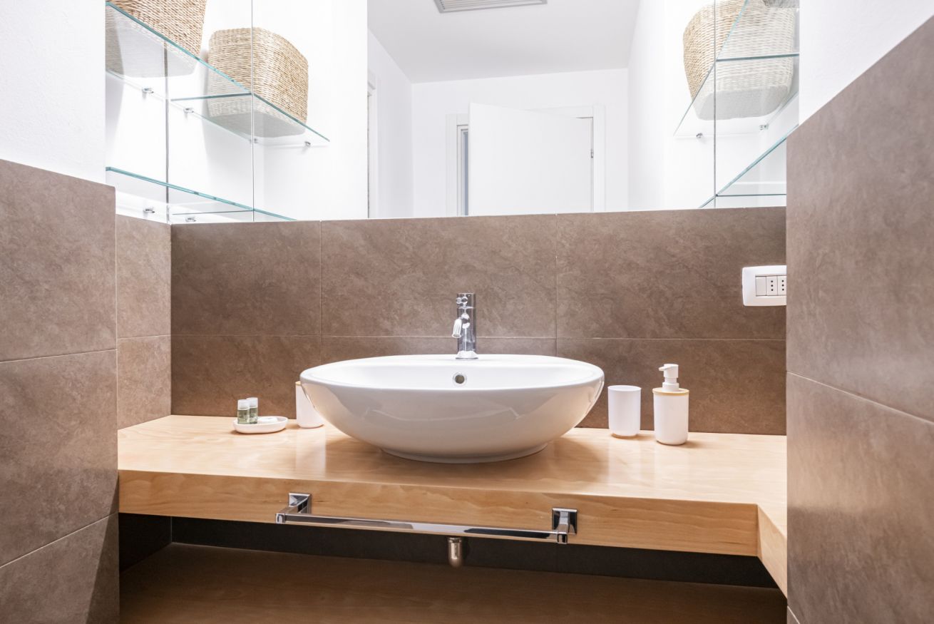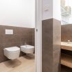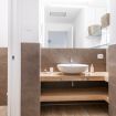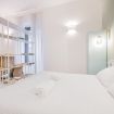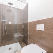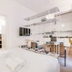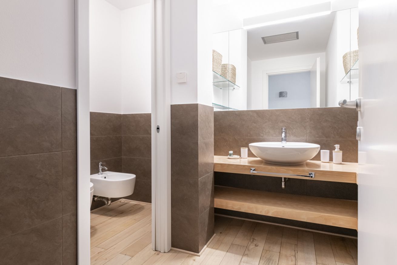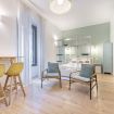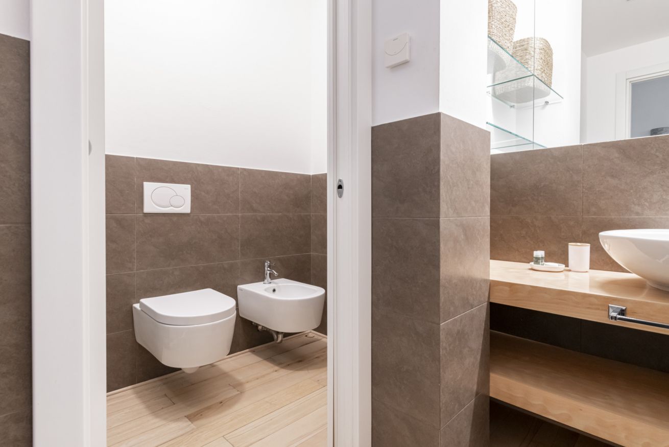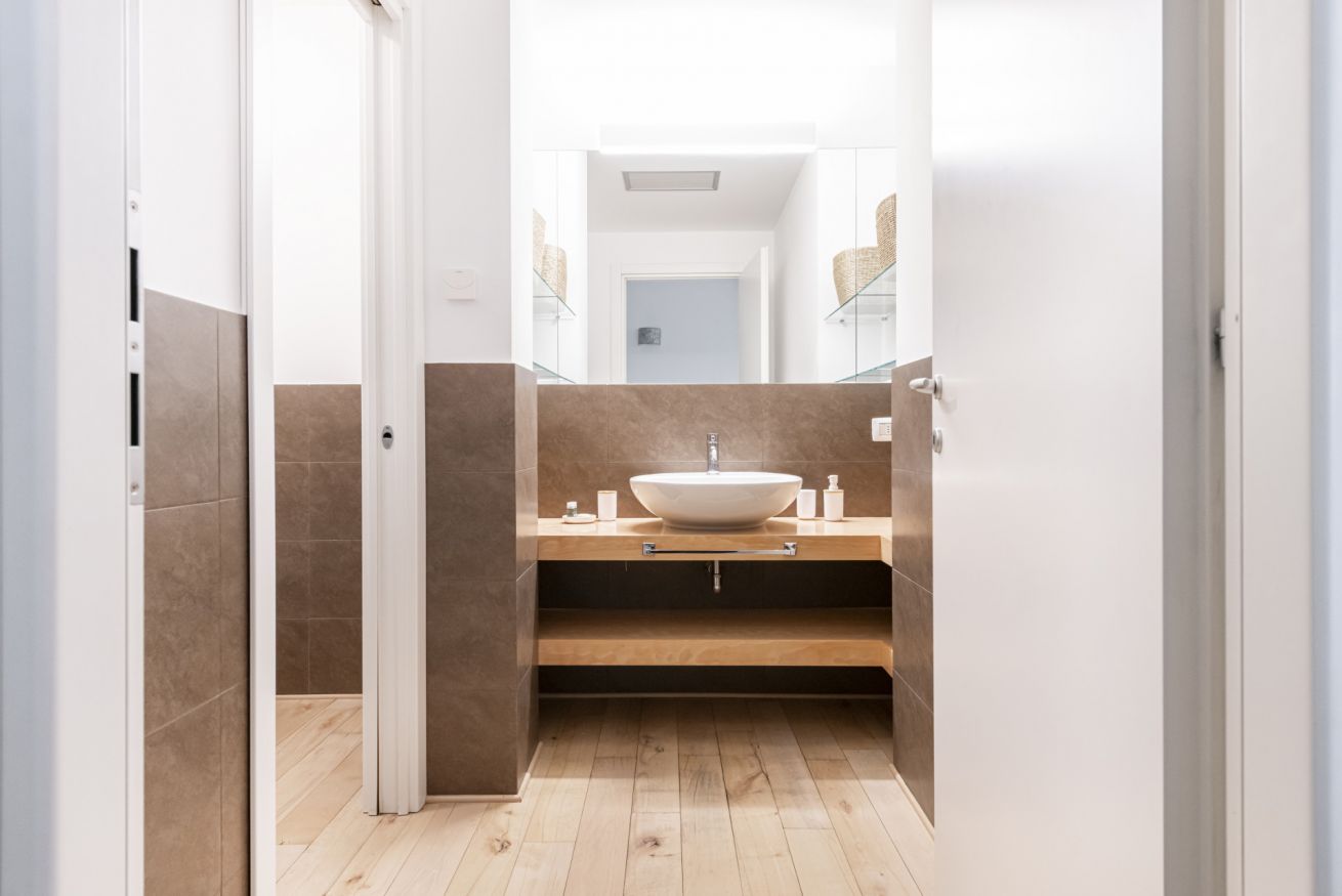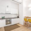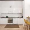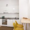 Il soggiorno accoglie una confortevole area relax con due poltrone imbottite, Smart TV a parete e dettagli d’arredo ricercati, perfetti per momenti di riposo dopo una giornata in città. La cucina lineare, moderna e ben organizzata, è completa di elettrodomestici e superfici funzionali; adiacente si trova un pratico breakfast table in legno con sgabelli, ideale per colazioni, pasti veloci o smart working. Il bagno, elegante e contemporaneo, è rifinito con materiali neutri e dispone di una spaziosa doccia walk-in in vetro, sanitari sospesi e mobile lavabo con contenitore. Un monolocale accogliente, luminoso e studiato nei minimi dettagli, perfetto per soggiorni di lavoro o piacere.