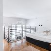 Il bagno, completamente rinnovato, presenta una spaziosa e moderna doccia in vetro, ideale per momenti di relax e comfort quotidiano. Salendo le eleganti scale in legno, si accede al soppalco dove si trova una spaziosa camera matrimoniale, un'oasi di tranquillità con annessa cabina armadio. Quest'ultima offre ampio spazio per organizzare abiti e accessori, aggiungendo un ulteriore tocco di praticità e raffinatezza all'ambiente.