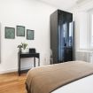 Situato al sesto piano di un prestigioso edificio recentemente ristrutturato, questo appartamento climatizzato offre un'esperienza abitativa senza pari. All'ingresso, si viene accolti da un'ampia e luminosa zona living, impreziosita da un elegante divano letto angolare matrimoniale e una smart TV di ultima generazione. La zona pranzo, finemente integrata, si affaccia su un balcone privato, ideale per momenti di relax all'aperto.