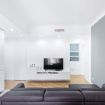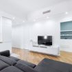 L'ingresso apre su una spaziosa zona living, arredata con un grande divano accogliente e una smart TV di ultima generazione, creando l'ambiente ideale per rilassarsi e intrattenere. La luce naturale inonda lo spazio, rendendo l'ambiente luminoso e arioso.