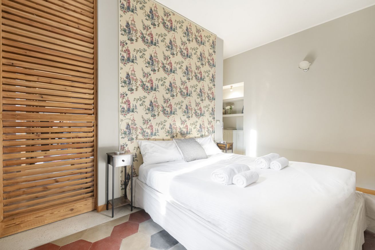 La cucina, moderna e completamente attrezzata, unisce funzionalità ed estetica con elettrodomestici integrati e finiture attuali, ideale per vivere la casa con praticità. La camera matrimoniale è accogliente e raffinata, con armadio capiente, carta da parati decorativa