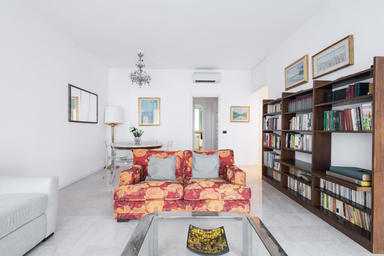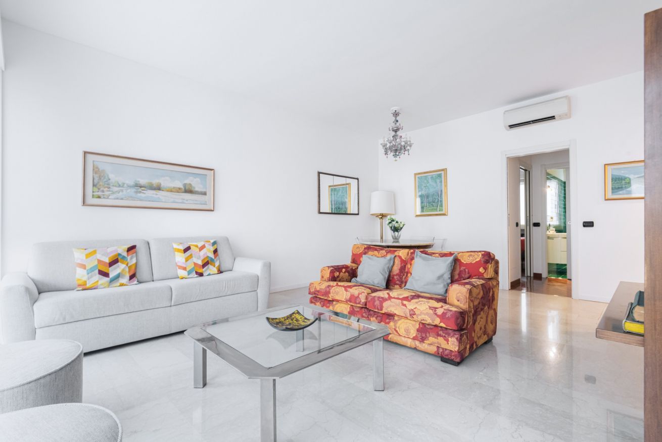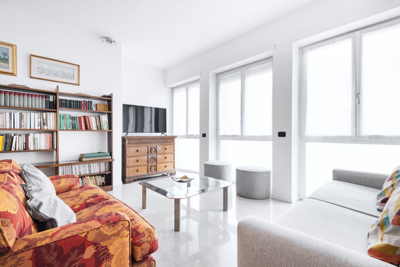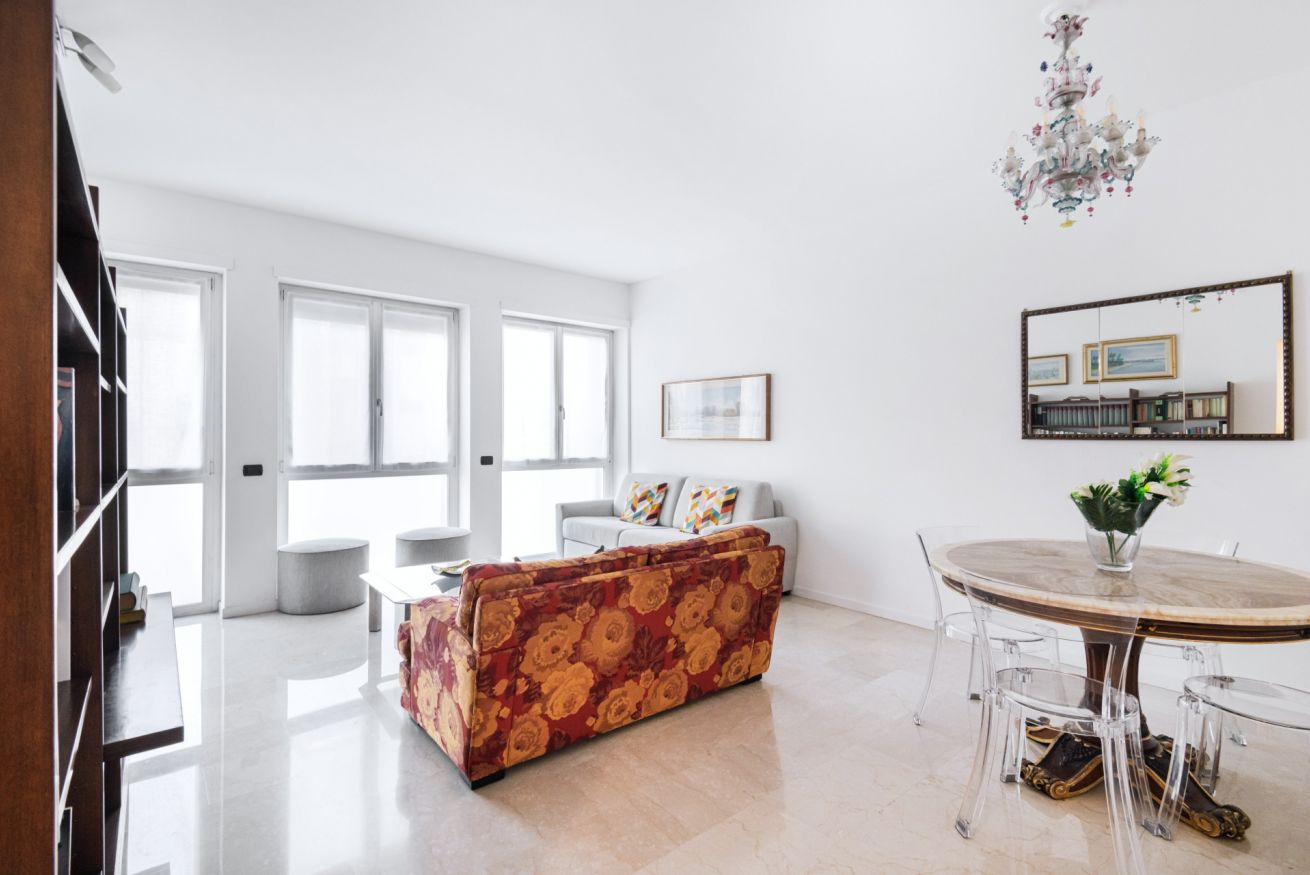 L'appartamento è composto da un ampia area giorno, con zona tv e sala da pranzo, il cui arredamento rispecchia la particolarità del quartiere, unendo elementi tradizionali ad altri più moderni. La cucina è abitabile e completamente attrezzata e affaccia con un balconcino sul tranquillo cortile interno. L’area notte è composta da un’elegante e spaziosa camera da letto matrimoniale con un ampio armadio e dal bagno, completo di box doccia.