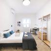 La zona living è il cuore dell’appartamento, con un comodo divano e una smart TV a parete, ideale per rilassarsi dopo una giornata milanese tra arte, shopping o lavoro. La vicina zona pranzo, con tavolo rotondo e sedie di design, è perfetta per una colazione lenta o una cena informale. Le grandi finestre assicurano una piacevole luce naturale, rendendo lo spazio ancora più arioso e accogliente.