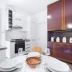 La cucina, completamente rinnovata, vanta elettrodomestici moderni e una pratica zona pranzo, ideale per colazioni veloci o pranzi informali. La disposizione degli spazi è studiata per massimizzare sia la funzionalità che l'estetica, con finiture di alta qualità che riflettono un design contemporaneo.