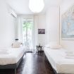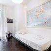 L'appartamento include una camera da letto con due letti singoli, dotata di un capiente armadio e accesso a un balcone privato, garantendo un luogo tranquillo per il riposo. Vi è anche una smart TV per intrattenimento personale. La camera matrimoniale è particolarmente spaziosa e dispone di un grande armadio a muro, perfetto per una sistemazione ordinata degli abiti.