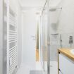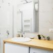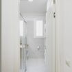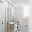 Bagno moderno con ampia doccia e lavatrice, pensato per la vostra comodità quotidiana.