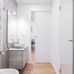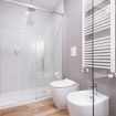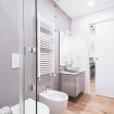 A completare il quadro di questa abitazione, un bagno dal design ricercato, dove la doccia walk-in in vetro si erge a simbolo di modernità e lusso, promettendo momenti di puro relax e rinnovamento personale.