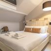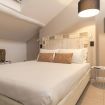 L’area notte, anch’essa dotata di Smart Tv, è composta una camera matrimoniale dallo stile fresco e lineare, ottima per rigenerarsi dopo le dinamiche giornate milanesi. L’appartamento è ideale per un soggiorno confortevole, nella zona pulsante della città.