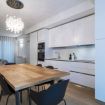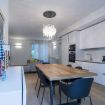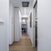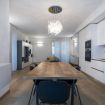 The large living area, conceived as an open space, houses a TV area and a dining room with an open kitchen. The spaces, well defined and illuminated by natural light, create a welcoming and modern environment. The furnishings, characterized by an elegant fusion of style and modernity, reflect the soul of the Garibaldi district, with design touches that give a unique and sophisticated atmosphere.