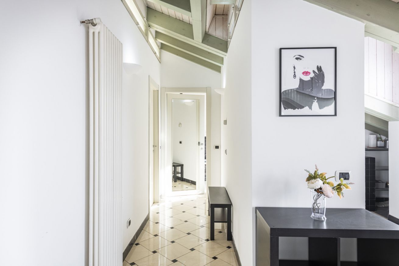 Panoramico appartamento all’ultimo piano, inserito in un elegante contesto residenziale con servizio di portineria. Situato al quinto piano con ascensore fino al quarto e ultimo tratto di scale, regala ambienti luminosi e un’atmosfera ariosa valorizzata dalle travi a vista e dalle ampie superfici finestrate.