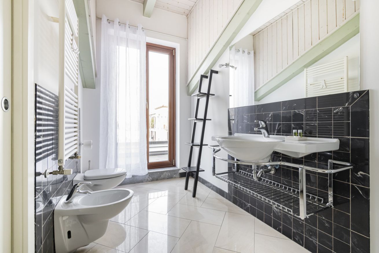 La zona notte comprende due camere matrimoniali. La prima, ampia e luminosa, dispone di armadio e accesso al bagno principale, completo di vasca con possibilità di utilizzo doccia. La seconda camera, altrettanto confortevole, è dotata di bagno en suite con doccia. Completano la proprietà balconi panoramici con vista aperta sui tetti della città, ideali per momenti di relax all’aperto.