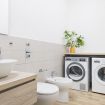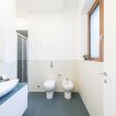 Un bagno di servizio completo di sanitari, lavatrice e asciugatrice aggiunge praticità all'abitazione.