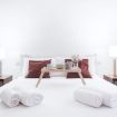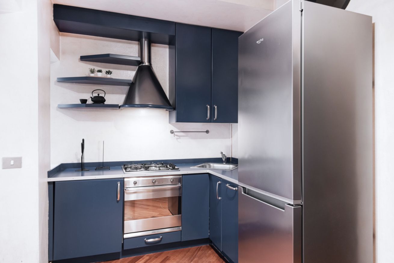 All'ingresso, sarete accolti da un angolo cottura moderno, progettato su misura con materiali di alta qualità e dotato di elettrodomestici all'avanguardia, perfetto per chi ama cucinare e intrattenere. La spaziosa zona living adiacente è un ambiente luminoso e accogliente, arredato con un comodo divano letto che offre ulteriore spazio per gli ospiti, una smart TV per il vostro intrattenimento e una zona pranzo ideale per cene conviviali.
