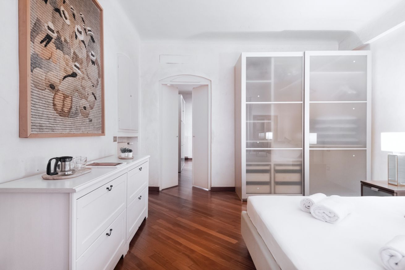 La camera da letto matrimoniale è un rifugio di tranquillità, ampia e ben organizzata, con un grande armadio che offre ampio spazio per il guardaroba. Ogni dettaglio è stato curato per garantire il massimo comfort e una sensazione di lusso.