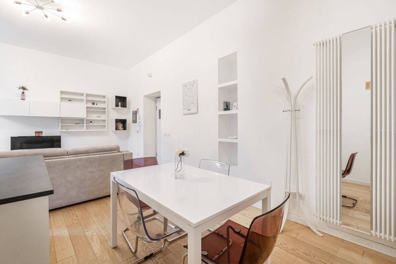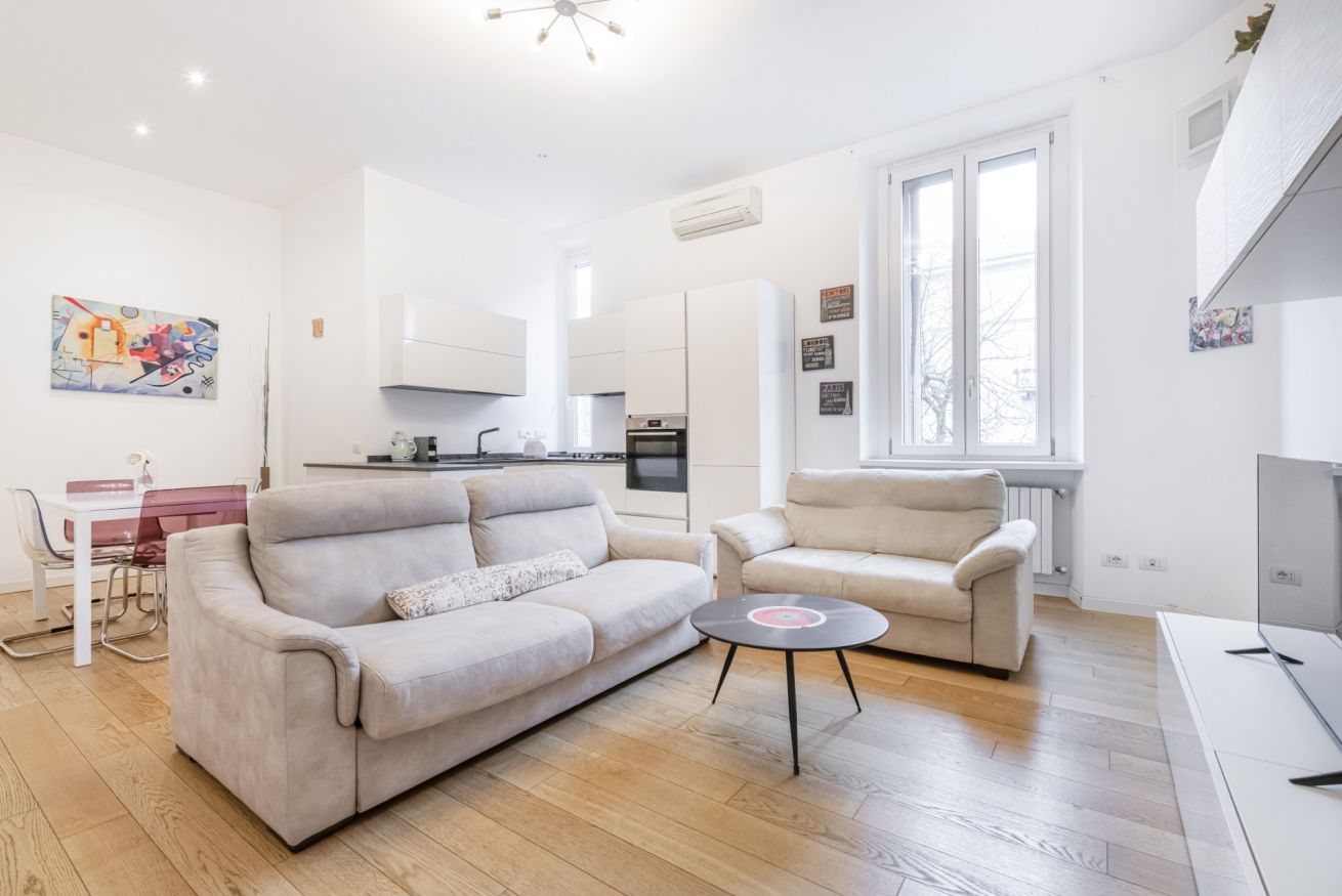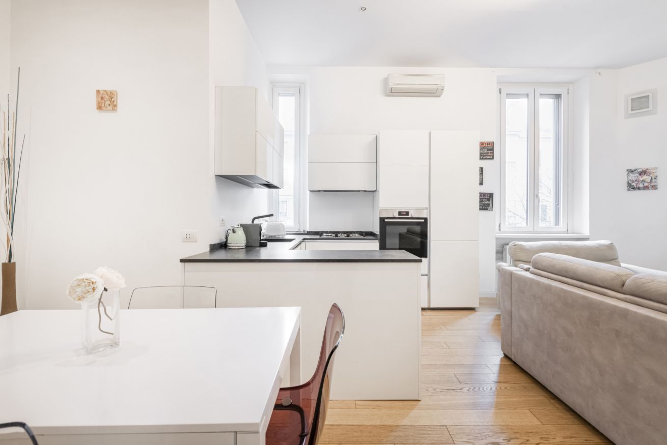 Nel cuore della rinomata zona di Porta Romana a Milano, si trova questo raffinato appartamento, progettato per offrire un'esperienza di vita di alto standing. Entrando, si viene accolti in un luminoso e spazioso soggiorno, arredato con gusto con comodi divani, tra cui un divano letto, perfetto per ospiti aggiuntivi, e una smart TV per intrattenimento senza limiti. L'area living si fonde armoniosamente con una zona pranzo elegante, adiacente a una cucina angolare all'avanguardia, dotata di penisola e completata da una selezione completa di elettrodomestici moderni, rendendo ogni momento culinario un vero piacere.