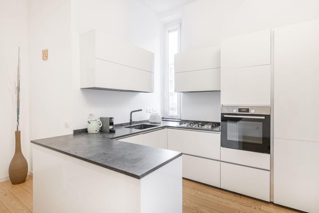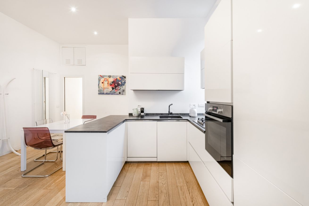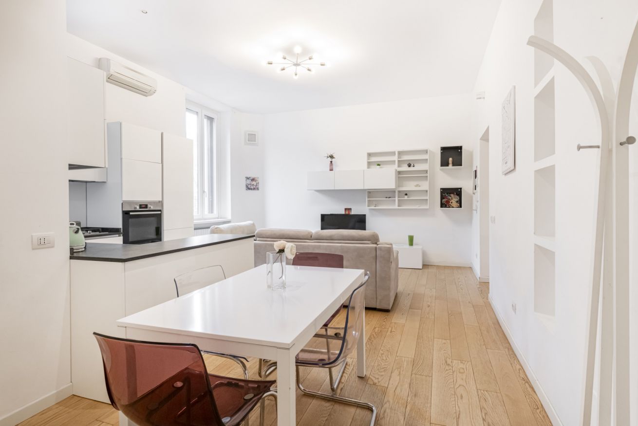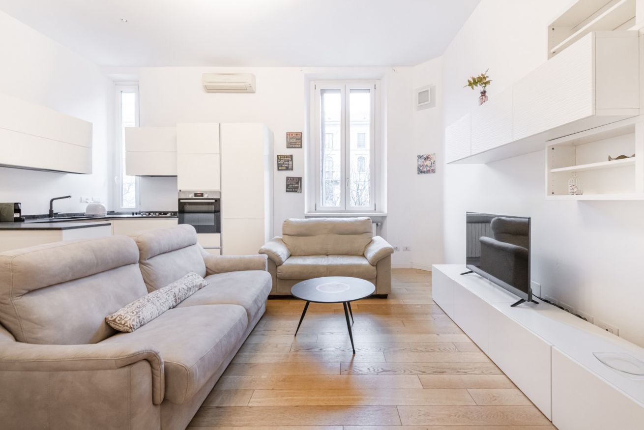 Nel cuore della rinomata zona di Porta Romana a Milano, si trova questo raffinato appartamento, progettato per offrire un'esperienza di vita di alto standing. Entrando, si viene accolti in un luminoso e spazioso soggiorno, arredato con gusto con comodi divani, tra cui un divano letto, perfetto per ospiti aggiuntivi, e una smart TV per intrattenimento senza limiti. L'area living si fonde armoniosamente con una zona pranzo elegante, adiacente a una cucina angolare all'avanguardia, dotata di penisola e completata da una selezione completa di elettrodomestici moderni, rendendo ogni momento culinario un vero piacere.