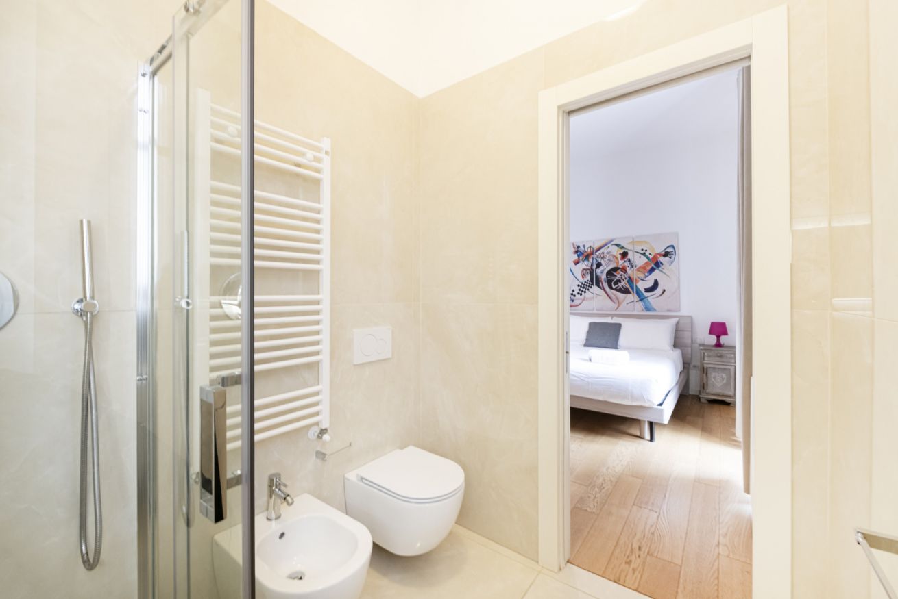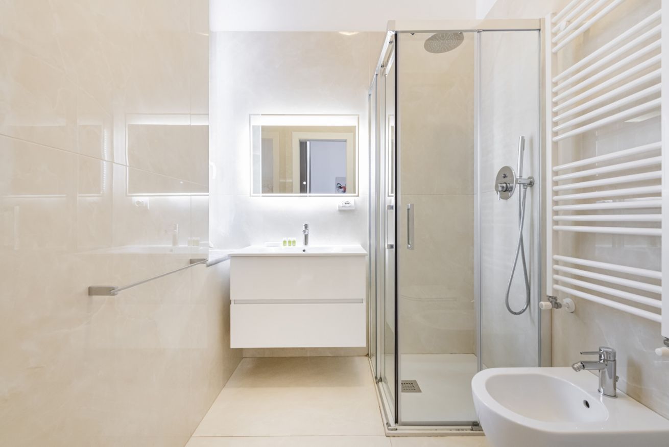 In zona Porta Romana, questo appartamento unisce eleganza e funzionalità: soggiorno spazioso con divano letto, smart TV, cucina angolare moderna con penisola e zona pranzo. Include camera matrimoniale con terrazzino, armadio a specchio, bagno en-suite con doccia walk-in; seconda camera con letto matrimoniale e ampio armadio; secondo bagno con doccia.