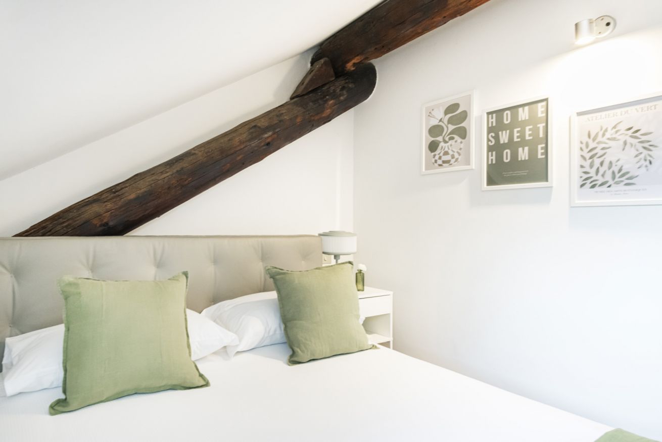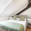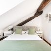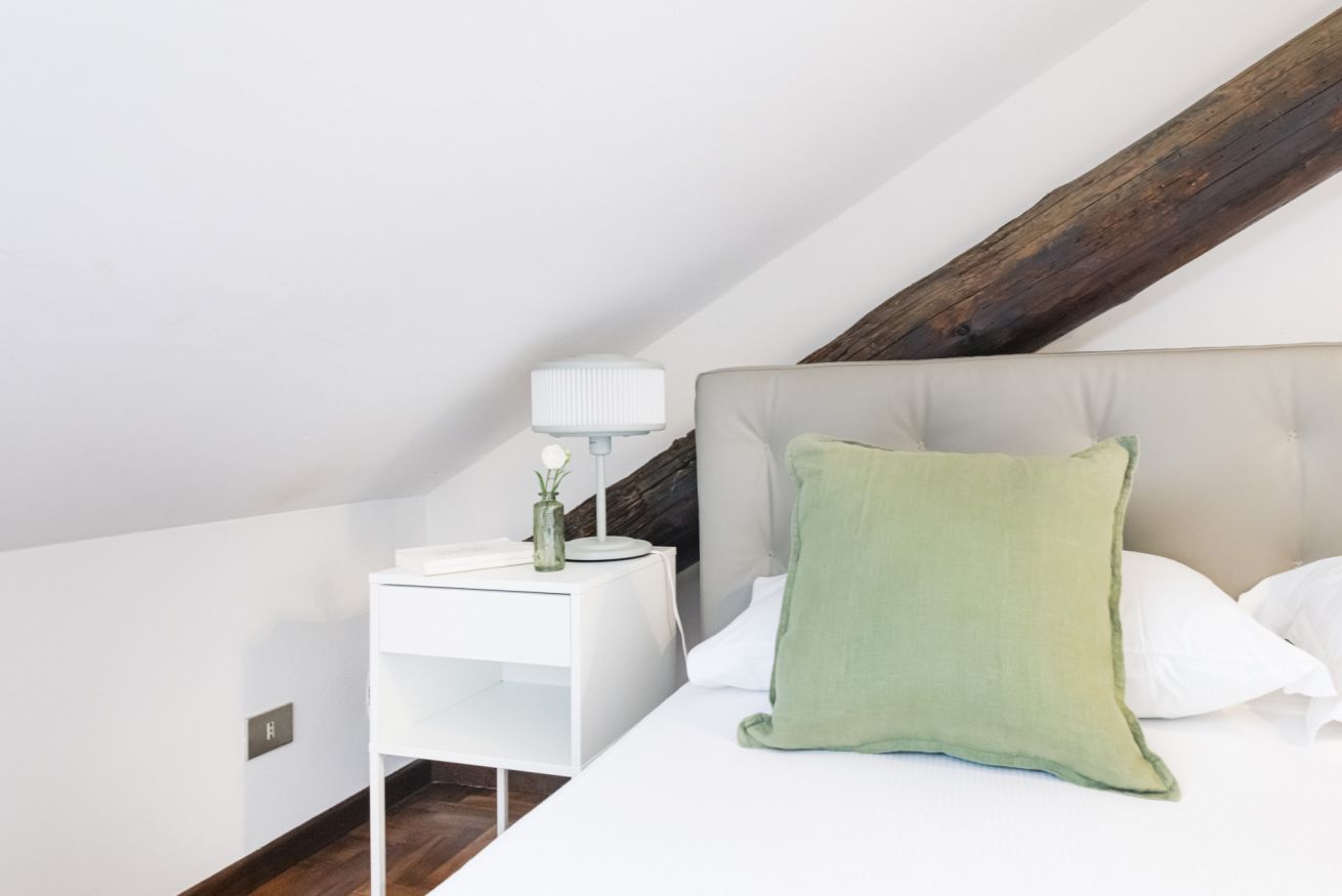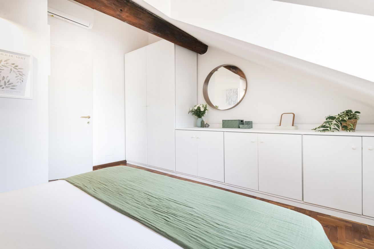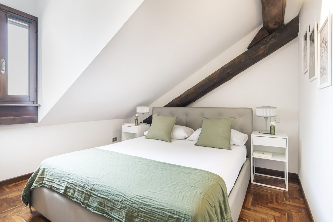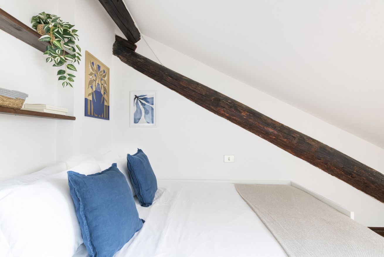 Una raffinata scalinata conduce alla zone notte situata al secondo piano mansardato che comprende due camere da letto silenziose e riposanti, rifugi perfetti dove recuperare le energie dopo giornate trascorse alla scoperta della città. Entrambe le stanze sono provviste di letti matrimoniali e armadi capienti per organizzare gli effetti personali. Anche il secondo piano è dotato di un pratico bagno con doccia per rigenerarsi all’inizio o al termine della giornata