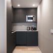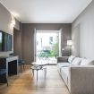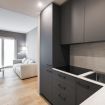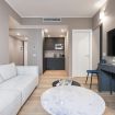 L’ingresso accoglie in una luminosa zona living arredata con un grande divano estremamente comodo e una smart TV, perfetta per momenti di relax o per ospitare amici. Adiacente si trova un angolo cottura, progettato su misura, completo di elettrodomestici moderni e funzionali che rendono questo spazio ideale anche per gli amanti della cucina.