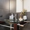 Il bagno elegante offre il massimo comfort, con una doccia a goccia che ti coccola e una lavatrice di ultima generazione che rende la tua vita quotidiana più semplice.