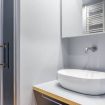 L’appartamento è composto da una moderna area giorno, con tavolo da pranzo, area tv e cucina a vista, separata dal resto della stanza da una splendida isola, che regala un’atmosfera di elegante dinamicità all’intero appartamento. La camera da letto matrimoniale, minimal e moderna, permette di godersi degli attimi di relax. Il bagno è completo di un ampio box doccia.
