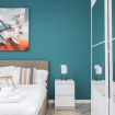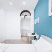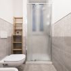 La residenza si estende in una camera da letto matrimoniale, ampie dimensioni e arredata con un grande armadio, offrendo abbondante spazio per gli abiti e accessori personali. Il bagno adiacente è dotato di una doccia moderna, finiture di pregio e sanitari di design, creando un ambiente rilassante e funzionale.