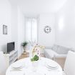 Questo elegante appartamento, situato in una posizione privilegiata, accoglie i suoi ospiti con un ingresso luminoso che apre la strada a una zona living altrettanto luminosa. Il soggiorno, arredato con gusto, dispone di una zona pranzo ideale per cene conviviali e di un comodo divano letto che offre una soluzione pratica per gli ospiti, completato da una smart TV per i momenti di relax.