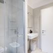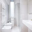 Il bagno, completamente rinnovato, è un'oasi di benessere, dotato di un'ampia doccia in vetro che aggiunge un tocco di modernità e lusso. Le finiture eleganti e i dettagli curati rendono questo spazio un luogo ideale per rilassarsi e rigenerarsi.