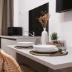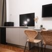 Infine, la zona notte, con un letto matrimoniale e un ampio armadio, garantisce comfort e spazio per un soggiorno all’insegna del relax. Un appartamento ideale per vivere Milano in un contesto esclusivo e funzionale.
