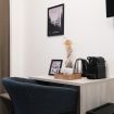 Concediti un soggiorno esclusivo in una suite di alto livello, dove ogni dettaglio è pensato per offrirti comfort al massimo grado. Situata nel cuore pulsante di Milano, questa suite rappresenta il connubio perfetto tra stile e funzionalità. Appena varcata la soglia, ti accoglie un’ampia zona living arredata con gusto raffinato, dotata di poltrone confortevoli, una smart TV per i tuoi momenti di intrattenimento, un frigo bar sempre a disposizione e un bollitore per le tue pause relax.