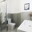 La zona notte è pensata per garantire la massima privacy e serenità: il letto matrimoniale è perfetto per il riposo assoluto e la stanza è studiata per regalarti un angolo intimo e accogliente. Il bagno privato, con la sua spaziosa doccia walk-in, è un’oasi di benessere