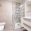 L’appartamento dispone inoltre di due bagni moderni, entrambi con docce in vetro e rifiniture di qualità, dotati di asciugamani, set di cortesia e asciugacapelli.