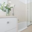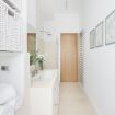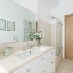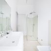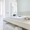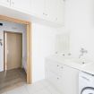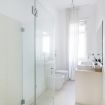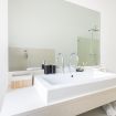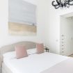 Sono disponibili tre camere da letto: due matrimoniali (una dotata di Smart TV a parete per il massimo del relax) e una terza singola, perfette per ospitare gruppi o famiglie in modo confortevole. L’appartamento include due bagni eleganti: uno con combinazione vasca-doccia, l’altro con una spaziosa e raffinata doccia walk‑in in vetro. La zona lavanderia aggiunge praticità al mix complessivo.