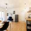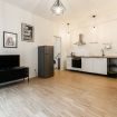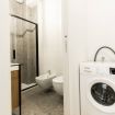 L’appartamento è composto da una spaziosa e luminosa area giorno, con una moderna cucina a vista completamente attrezzata, un tavolo da pranzo per quattro persone e l’area tv, rinfrescata dall’ampia porta-finestra che dà accesso ad un balconcino. L’area notte è composta da una elegante e minimal camera matrimoniale, spaziosa e dotata di un capiente armadio. Anch’essa è illuminata dall’accesso ad un balcone privato, perfetto se si desidera rilassarsi e godersi la permanenza in città. Completa l’appartamento il moderno bagno con un ampio box doccia.