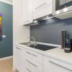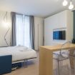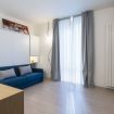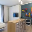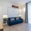 The apartment consists of a lovely living room with an open kitchen, perfectly functional, equipped with TV and dining table.The space is easily transformed into a sleeping area, as it is equipped with a foldaway double bed, perfect for relaxing and benefiting from moments of intimacy.Adjacent to the room you will find a large bathroom with shower. The apartment is equipped with every comfort necessary to ensure a comfortable and functional stay and in the most energetic area of the city.