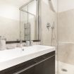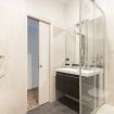 L'appartamento dispone anche di una seconda camera da letto con due letti singoli, ideale per bambini o ospiti. Questo ambiente è completato da un secondo bagno completamente rinnovato, che presenta una lussuosa doccia walk-in in vetro.