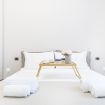 La camera matrimoniale è spaziosa e raffinata, arricchita da armadi con ante a specchio che amplificano la luce naturale e da una seconda Smart TV per il massimo comfort. Il moderno bagno, rifinito con materiali di qualità, dispone di una doccia walk-in in vetro, perfetta per rigenerarsi dopo una giornata intensa.