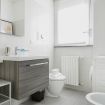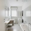 L’appartamento offre due spaziosi servizi, uno dotato di ampia doccia e l’altro di comoda vasca da bagno, perfetta per rigenerarsi dopo le lunghe giornate milanesi. Il trilocale è molto confortevole e rilassante e fornisce ogni comfort necessario per garantire un soggiorno comodo e funzionale in una zona tranquilla e residenziale.