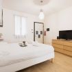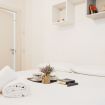 La zona living accoglie con calore, offrendo una cucina a vista completamente attrezzata, ideale per preparare gustosi pasti. Il tavolo da pranzo è perfetto per cene conviviali, mentre il confortevole letto matrimoniale e la smart TV garantiscono momenti di relax dopo una giornata trascorsa ad esplorare la città.