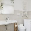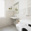 Il bagno, moderno e funzionale, è dotato di un'ampia doccia per un risveglio rigenerante e di una lavatrice per garantirti il massimo comfort durante il soggiorno.